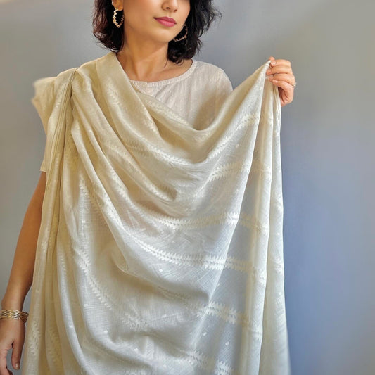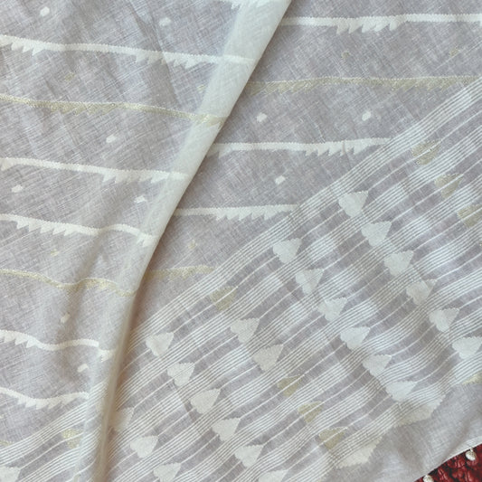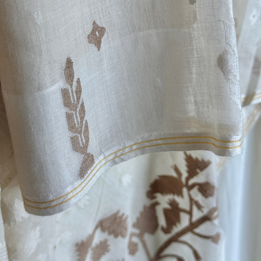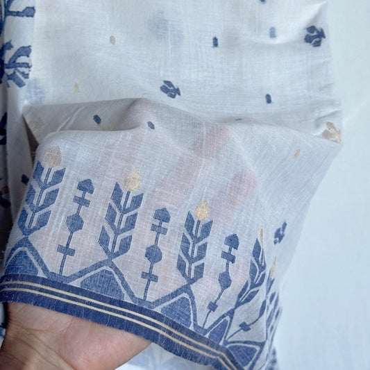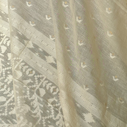 Jamdani Moonlit Meadows Handwoven 250 Count Cotton and Real Zari Sari