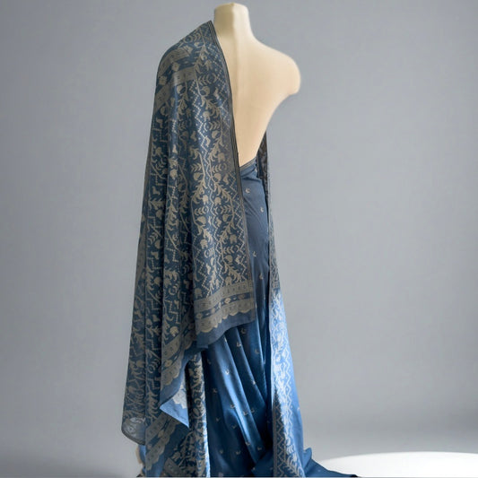 Jamdani TERCHI FERN Indigo Cotton Sari