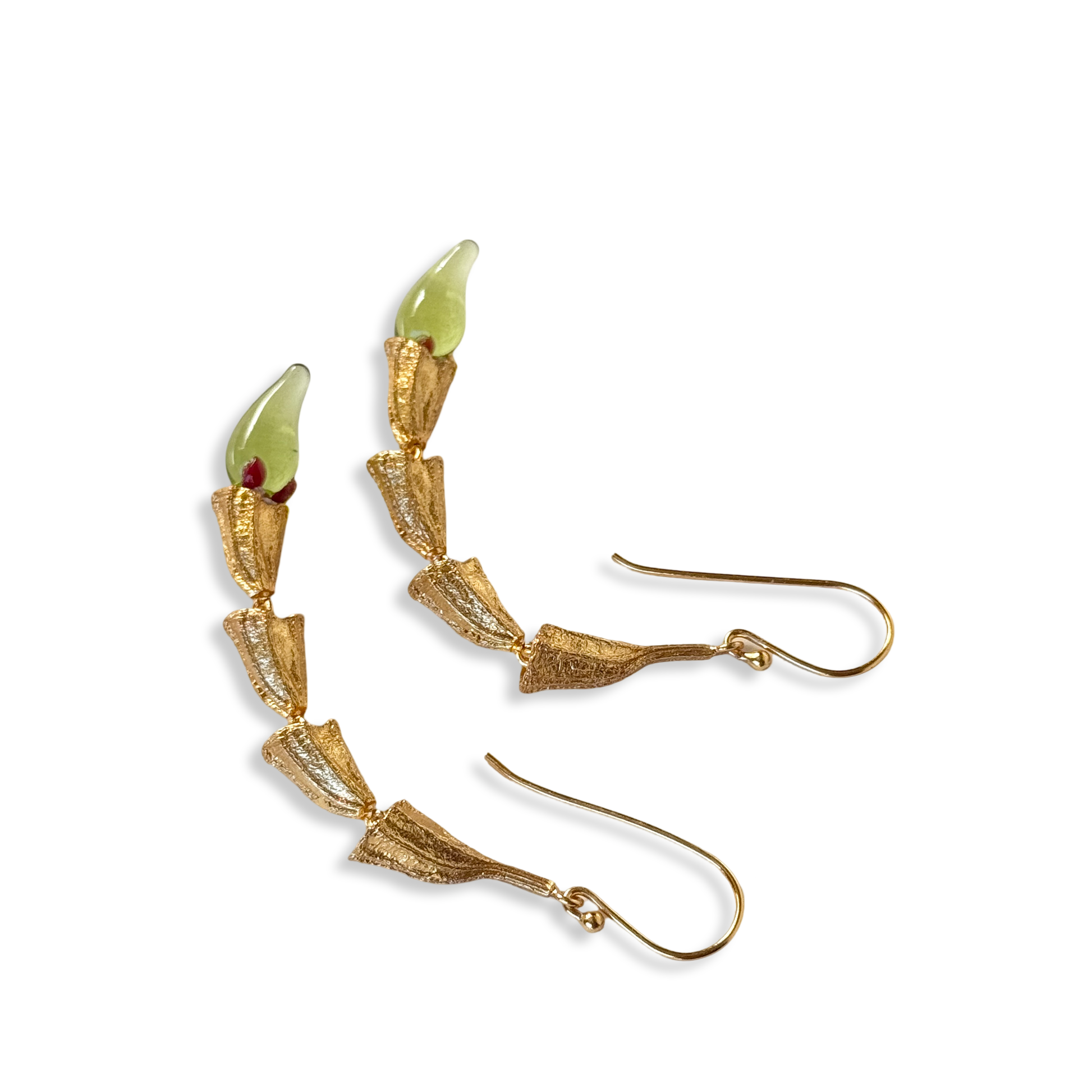Fyoli Fyoli jewelry is all about finding joy and beauty in the natural world around us instilling in us a sense of becoming. Presenting MIRCHI gold plated chili pod dangle earrings from our seedpod inspired series.