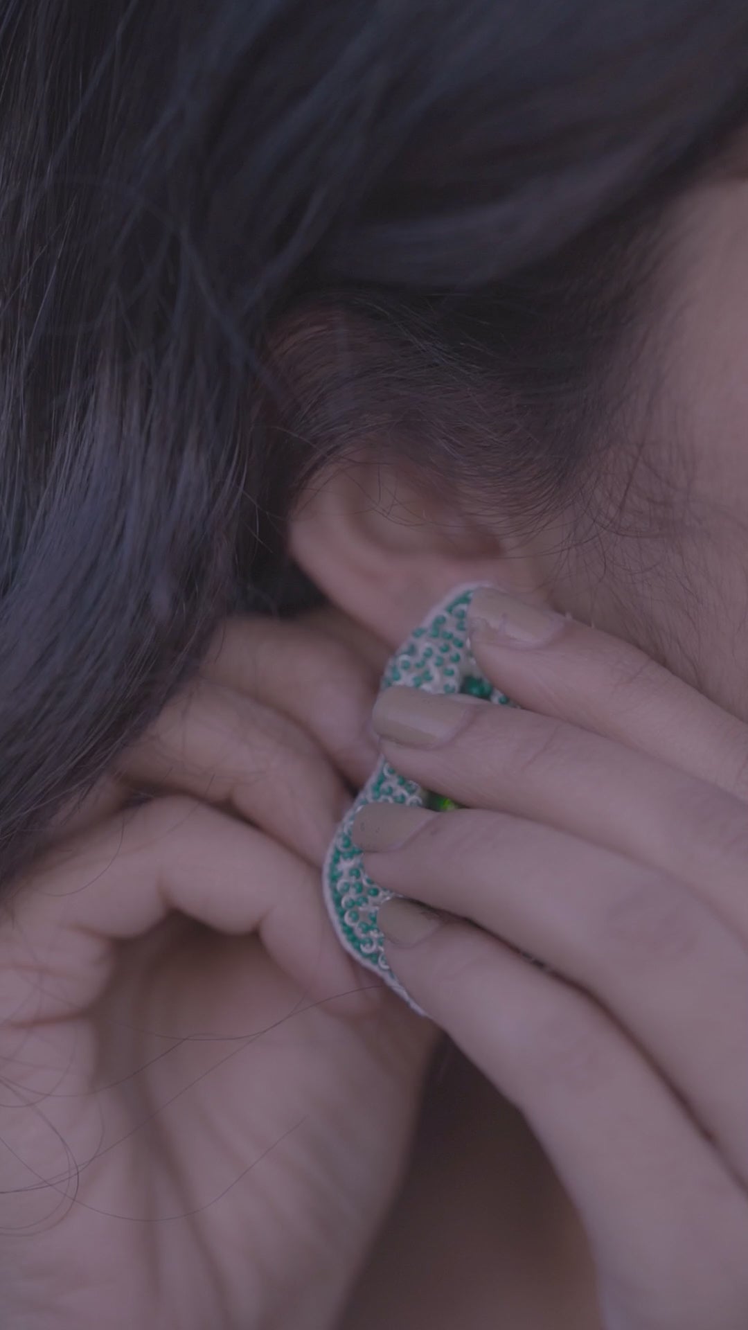 🌼Designed in California and ethically made in collaboration with artisans in India. Tiny glass beads and use of fabric backing makes these earrings super lightweight and comfortable. A fabulous statement ear ornament which transitions seamlessly from a casual look to a dressy one.
