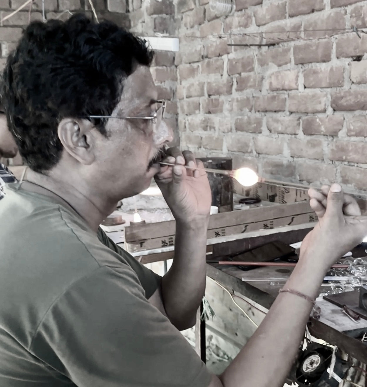 These earrings feature hand blown glass pods expertly made by artisans from Firozabad, India and designed by our founder here in California. The small town of Firozabad has been a center of hand blown glass works historically. All our glass components are made of highest quality borosilicate. The craft of mouth-blowing glass requires exceptional skill, coordination, hand movement and intuition.