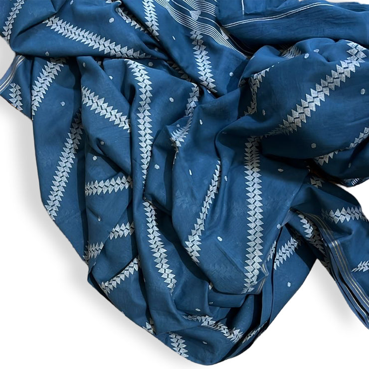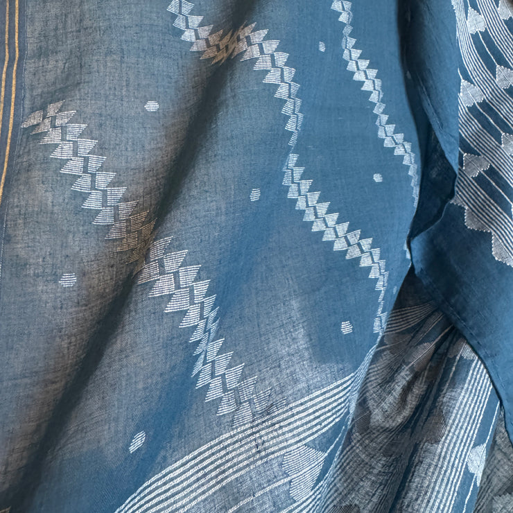 Jamdani TERCHI FERN Indigo Cotton Sari