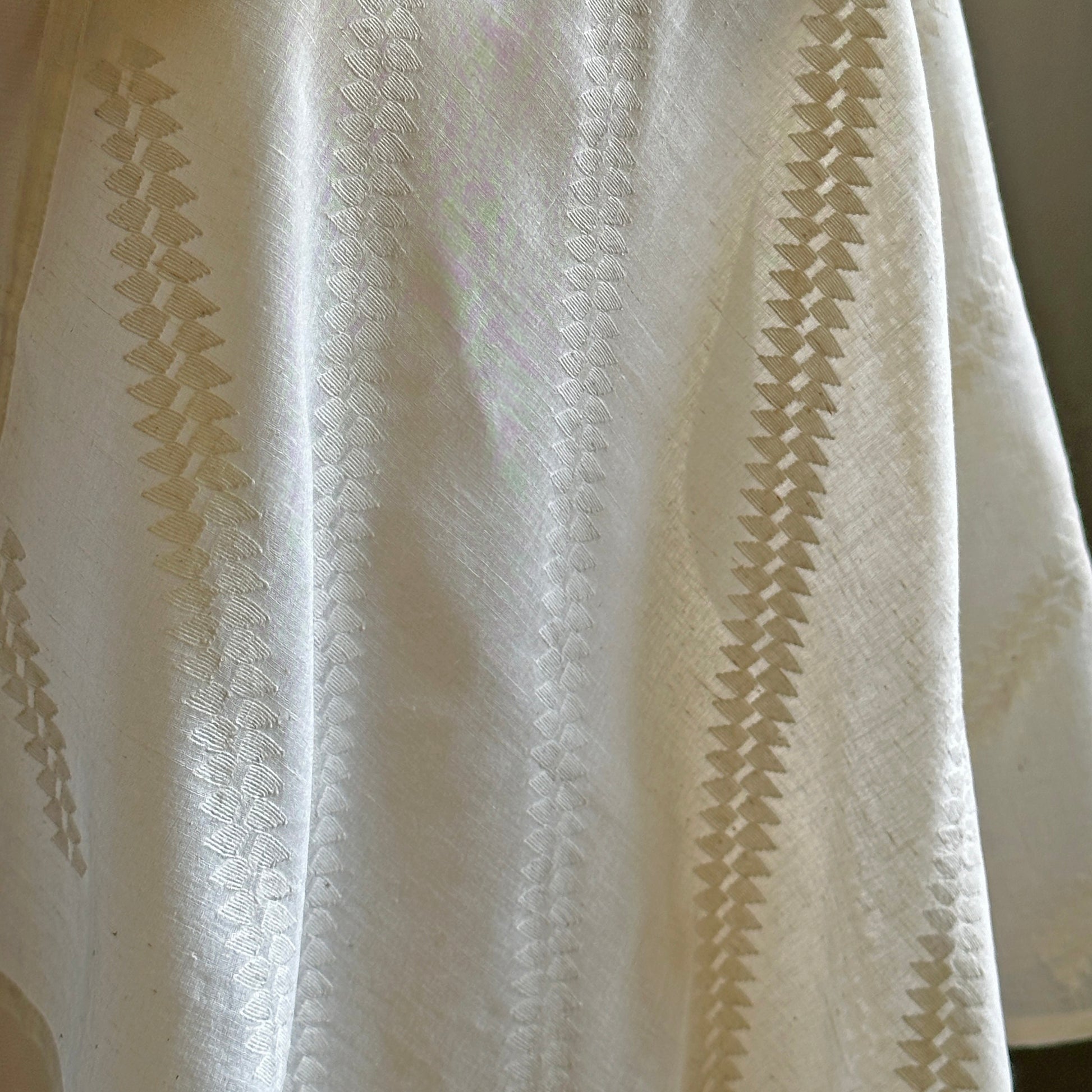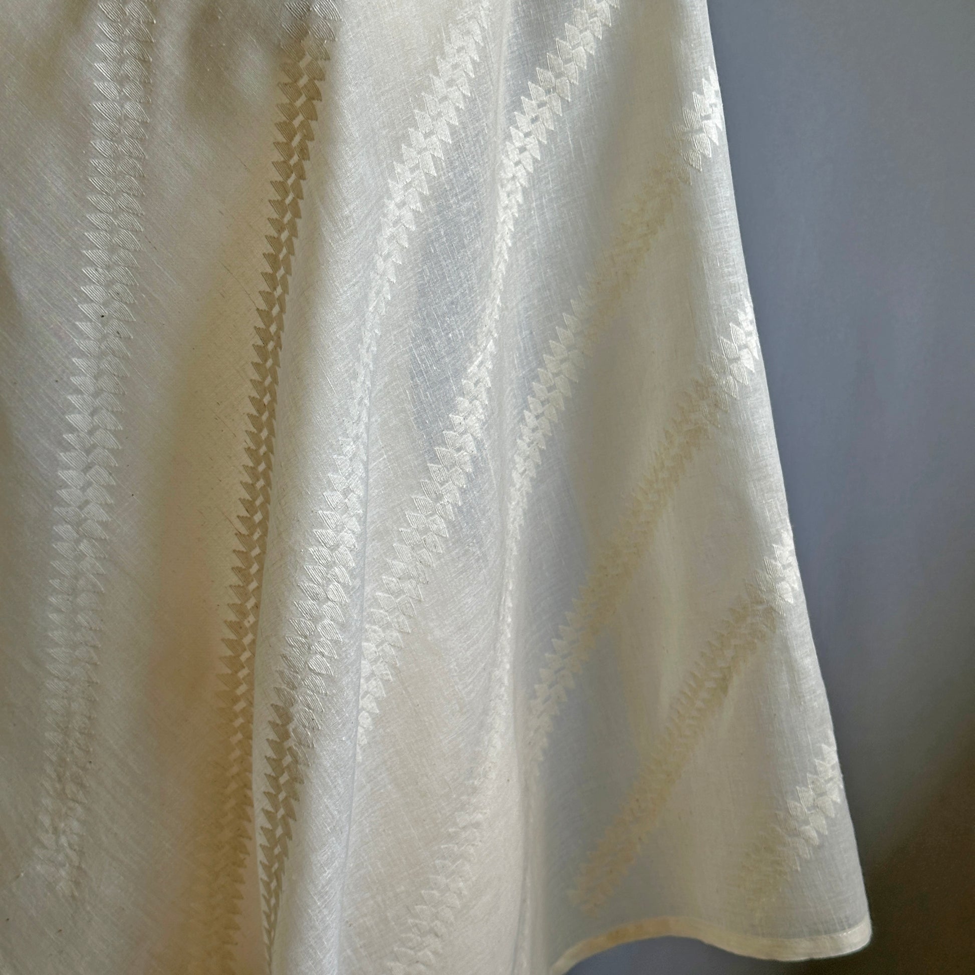 Made of unbleached, undyed pure cotton with 150 count hand spun yarn on weft and 100 count mill spun cotton on warp using highly skilled heritage weave of needlework Jamdani, a supplementary extra weft weave rooted in the West Bengal region of India.