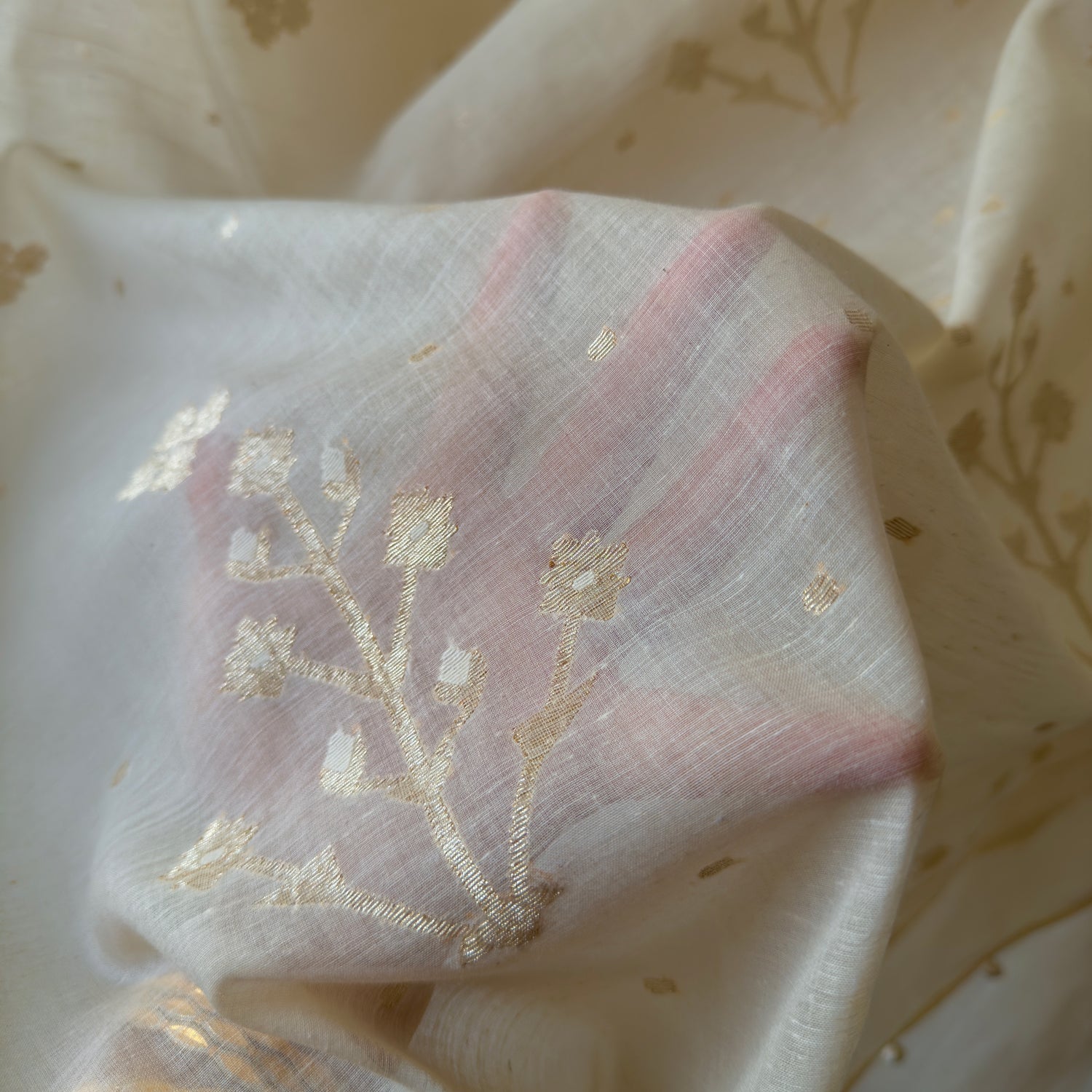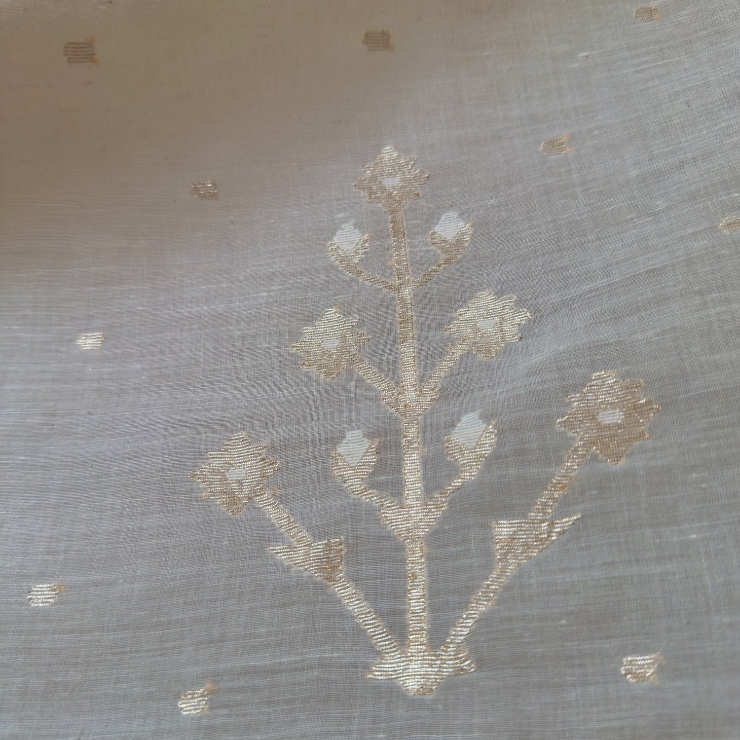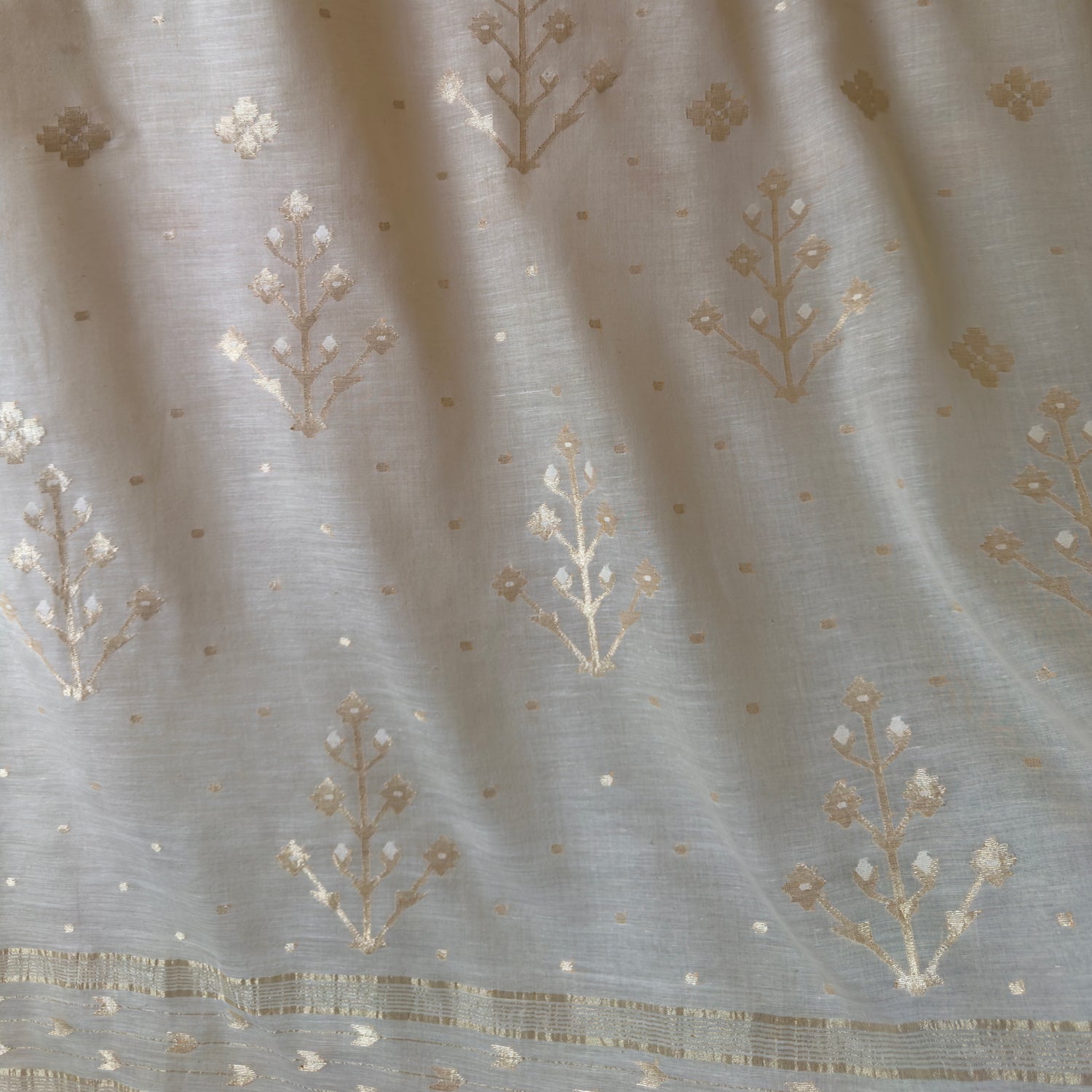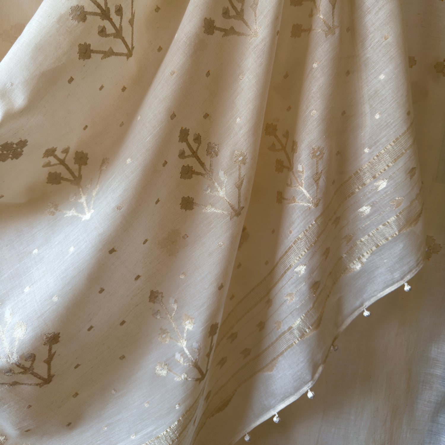 Jamdani Moonlit Meadows Handwoven 250 Count Cotton and Real Zari Sari