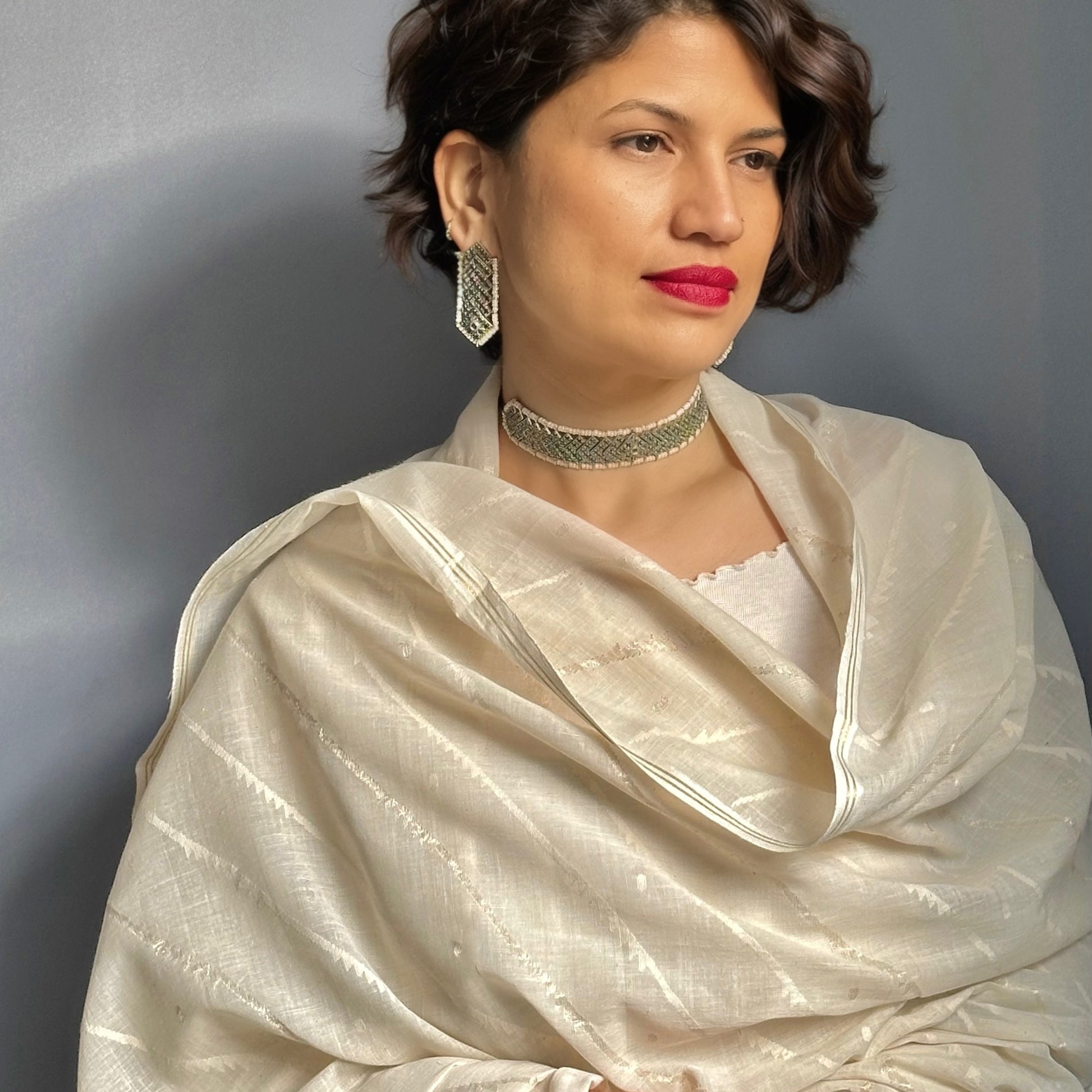 Jamdani Terchi Cotton Shoulder Wrap-Made to Order