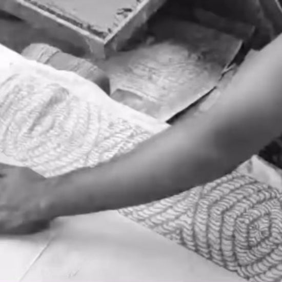 Bagh Print is a unique traditional Indian printing originating in village Bagh, Dhar district of Madhya Pradesh. The river Baghini which runs through the village provides the much needed water which is the foundation of this craft. It is believed that the copper and lime rich water brings out the rich colors of natural pigments and also helps with color fastness.