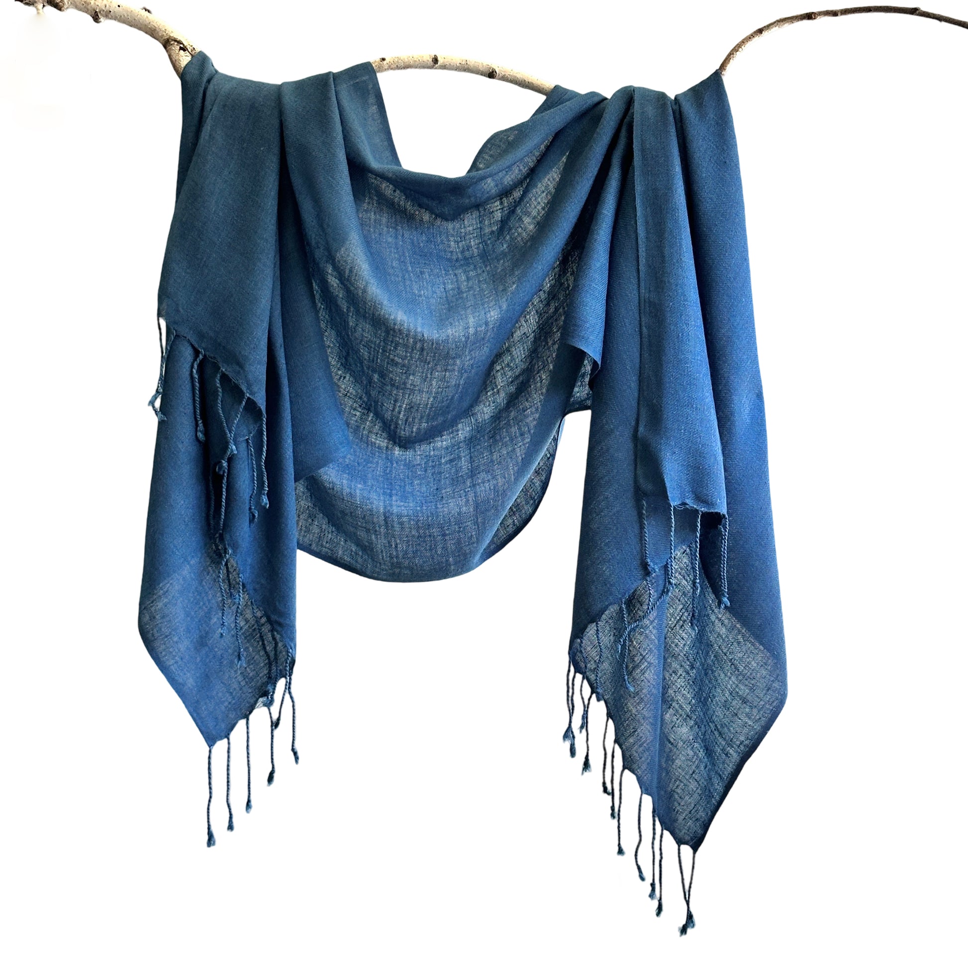 Slow made just as nature intended- Handwoven peace Eri silk scarves hand yarn dyed using natural Indigo dye🌿