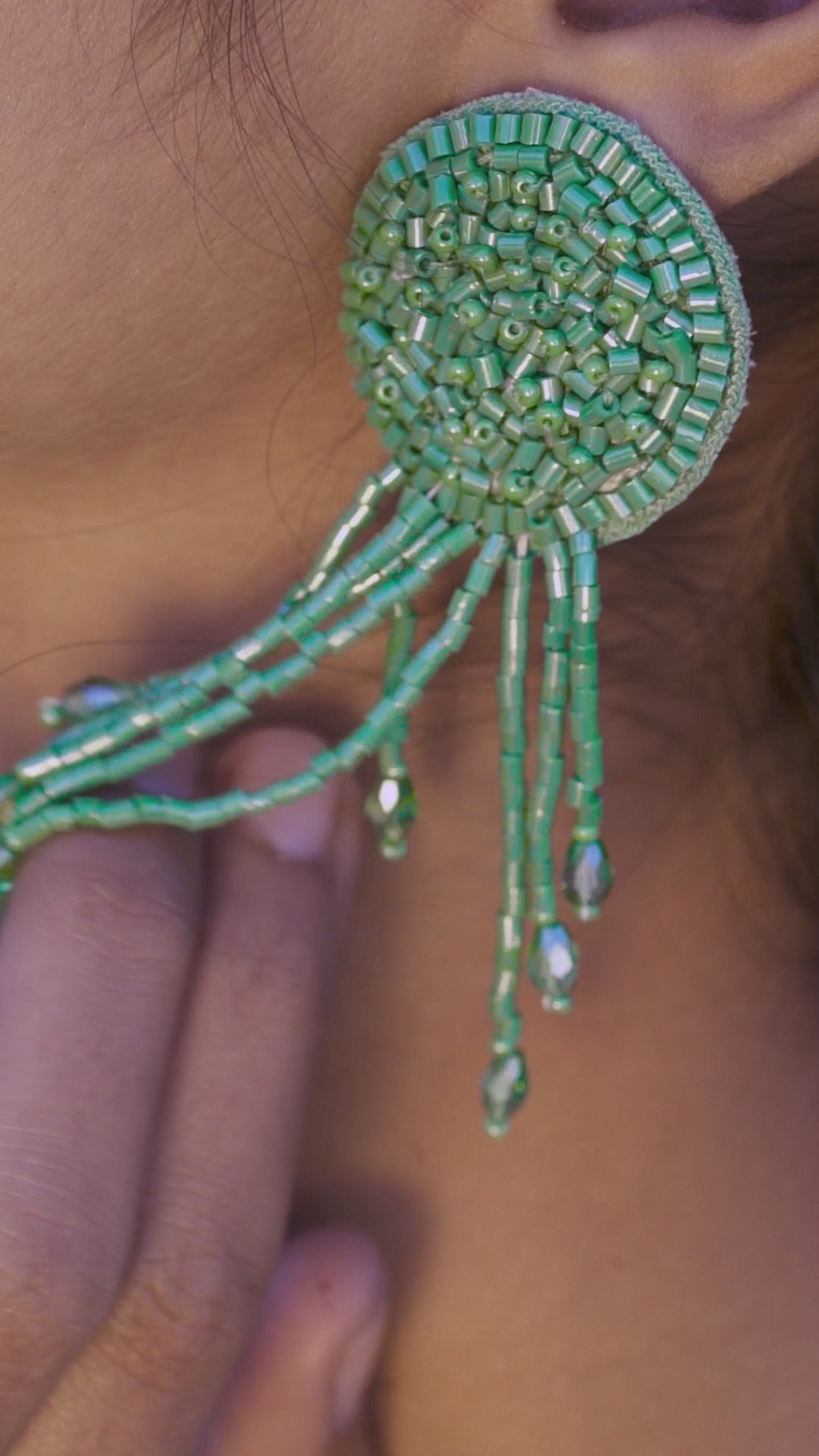 🌼Tiny glass beads and use of fabric backing makes these earrings super lightweight and comfortable. A fabulous statement ear ornament which transitions seamlessly from a casual look to a dressy one.