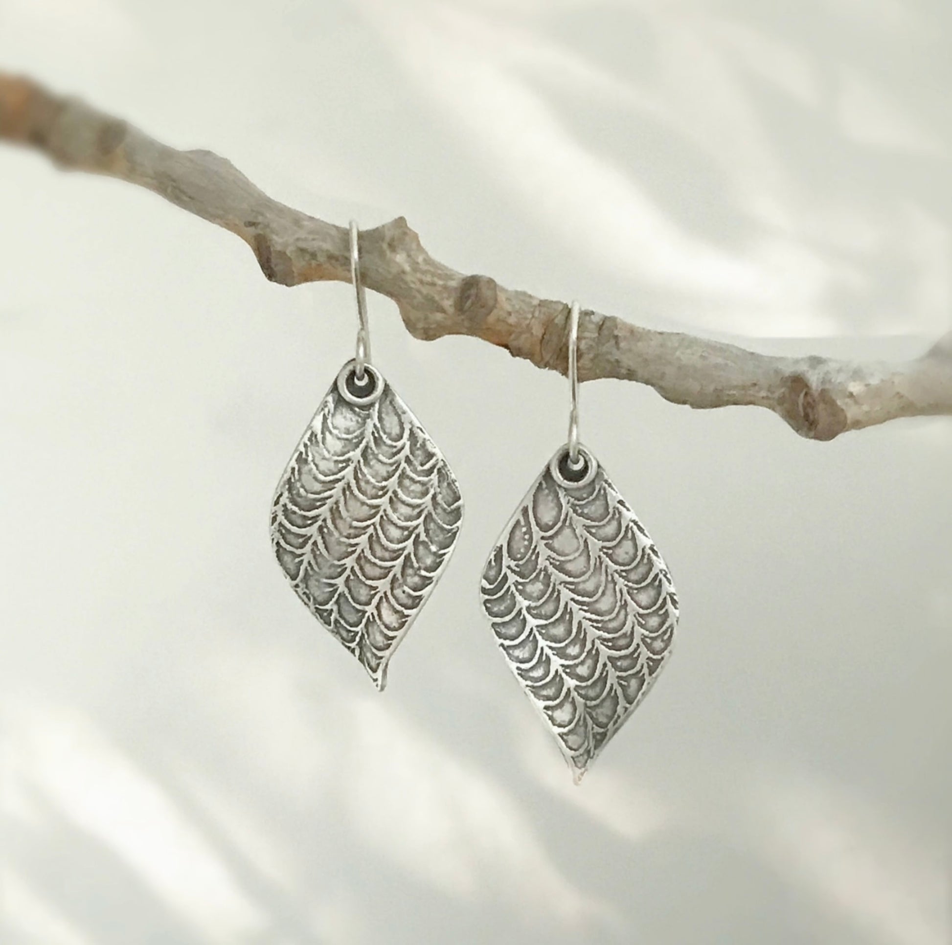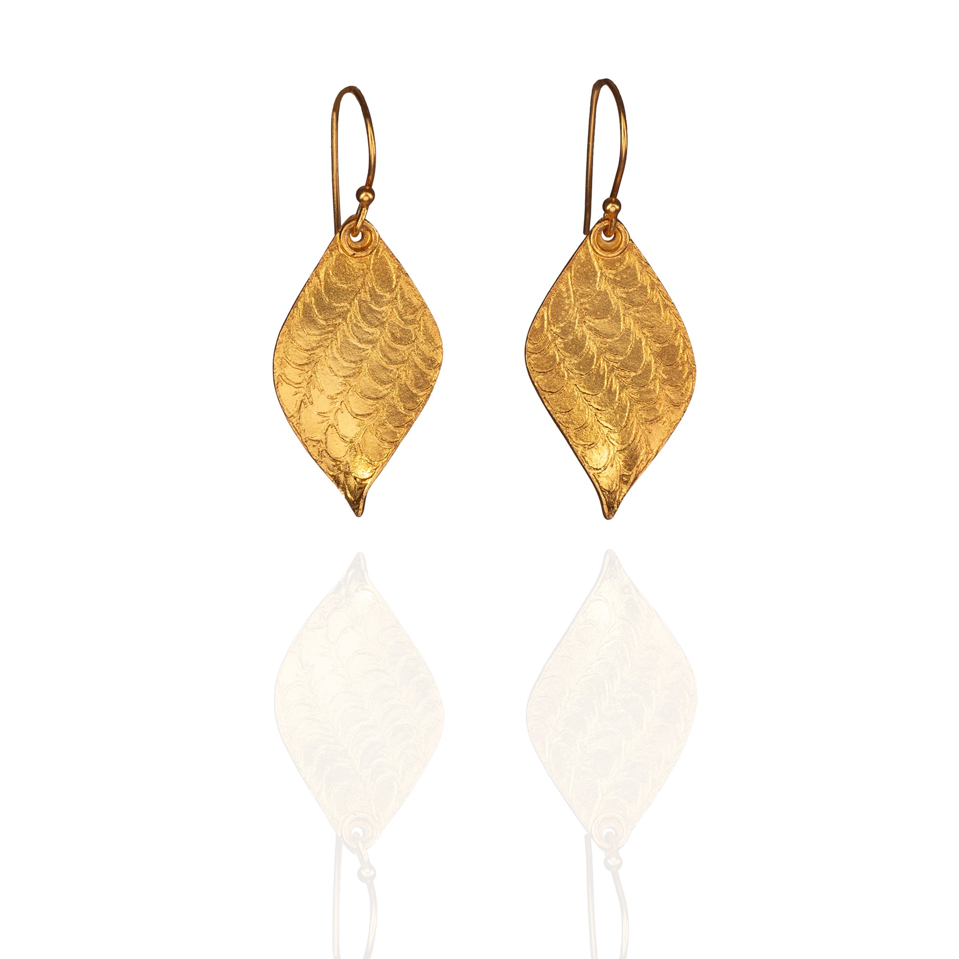 Fyoli Fyoli jewelry is all about finding joy and beauty in the natural world around us. Our original winged Beej earrings are inspired by beautiful winged seedpods of Tree of Heaven. This beautiful sinuous form is also reminiscent of a leaf. Leaf vein inspired minutiae texture you see here is hand drawn by our Founder that you will also find in our textiles. Made with nickel and lead free 22K gold plated brass. Sterling silver variation can be purchased in bright or oxidized finish. Please leave us a note about the finish you prefer.