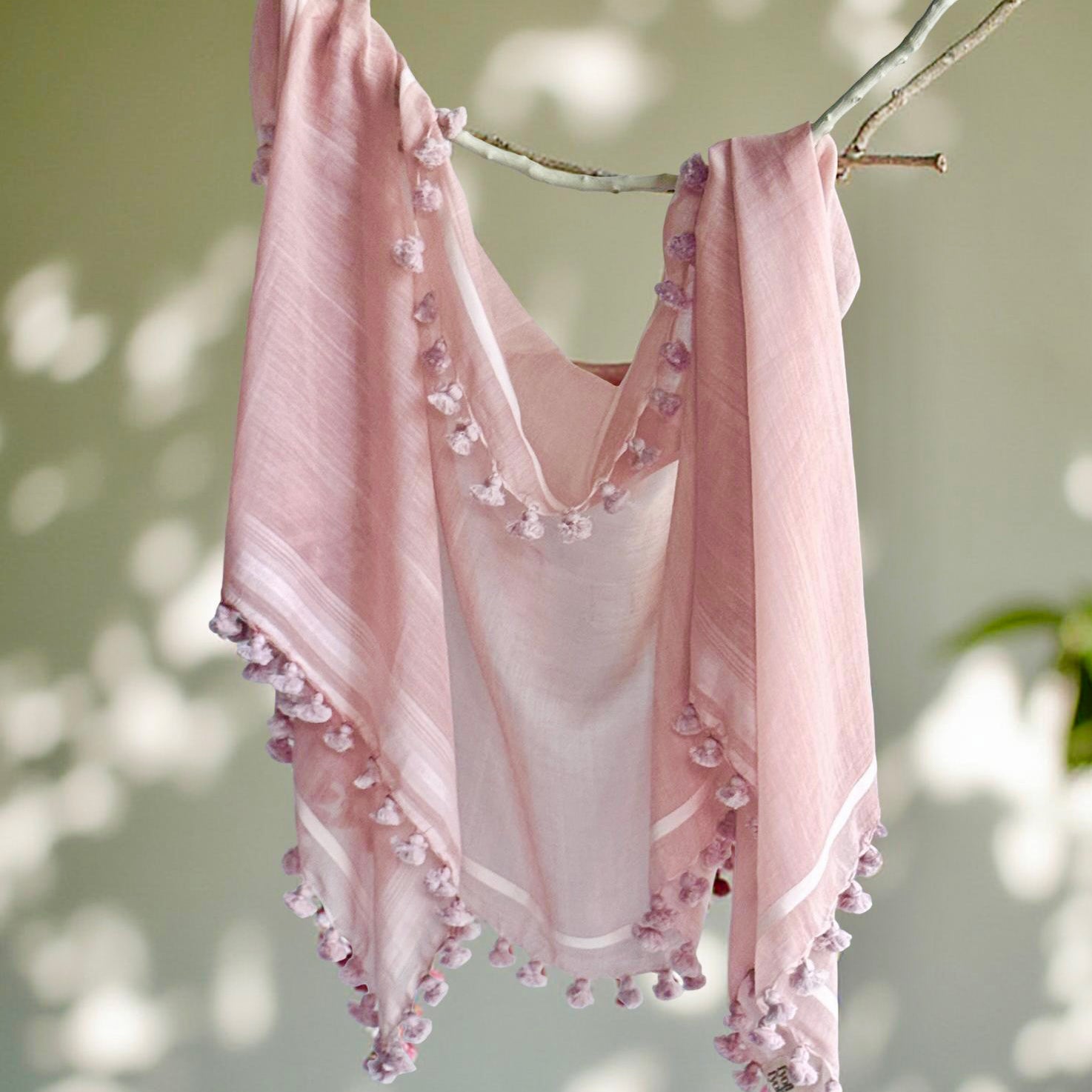Cotton Silk Madder Pink WOVEN MIST Natural Dye Handwoven Scarf